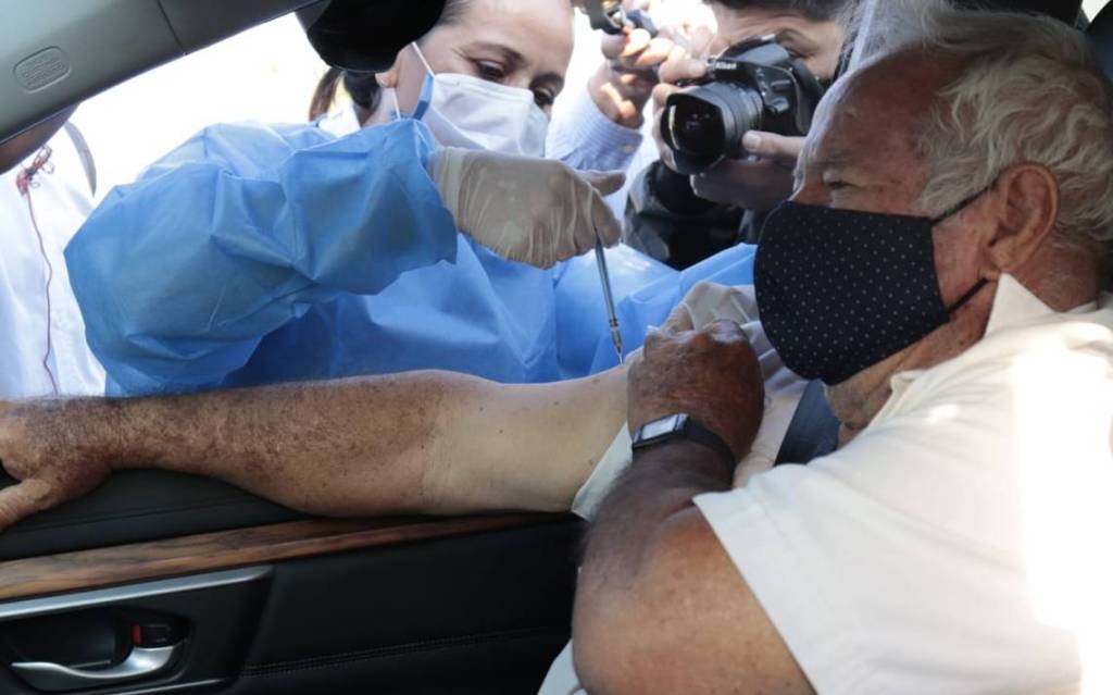 Y es que la Universidad de Guadalajara se convirtió en el primer centro masivo de vacunación desde el automóvil, esto con el objetivo de evitar mayores contagios entre los adultos mayores que reciben la vacuna, misma que se da en el estacionamiento del campus universitario.