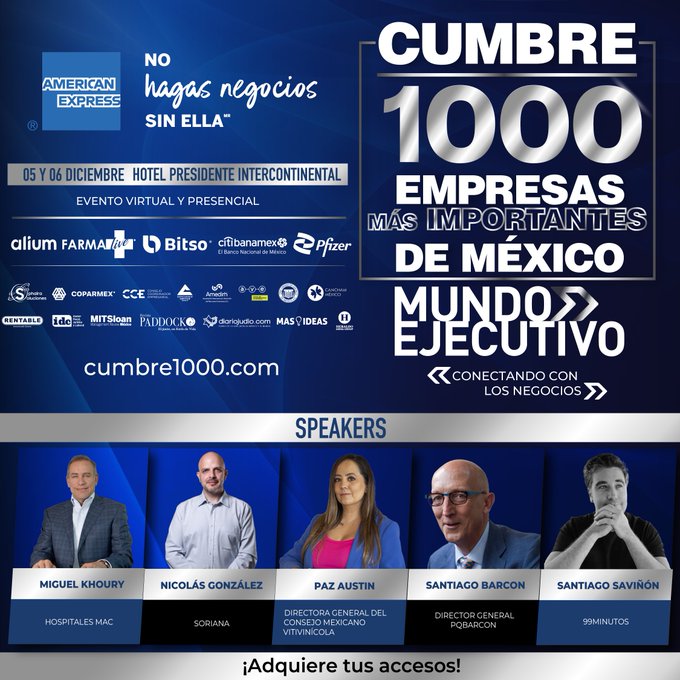 Es un honor participar en la Cumbre1000 donde destacan a las empresas más importantes en México, que se llevará a cabo el 05 y 06 de diciembre. ¡Te esperamos!